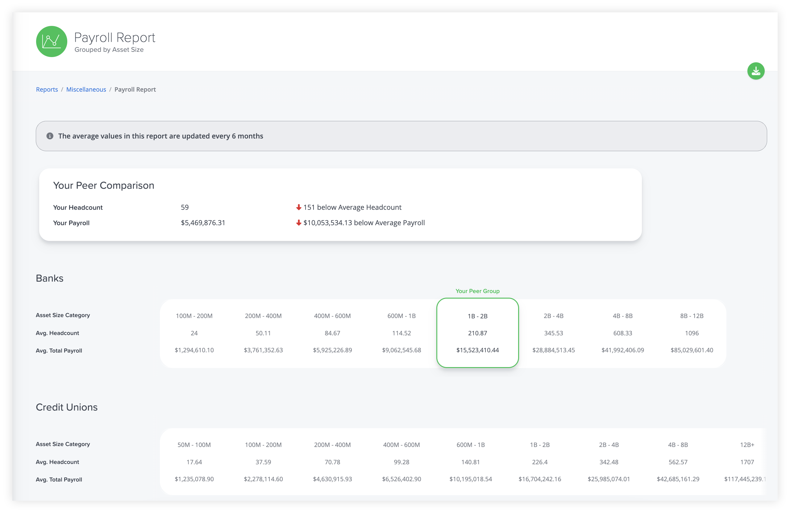 NEW: Average payroll and headcount by asset size report